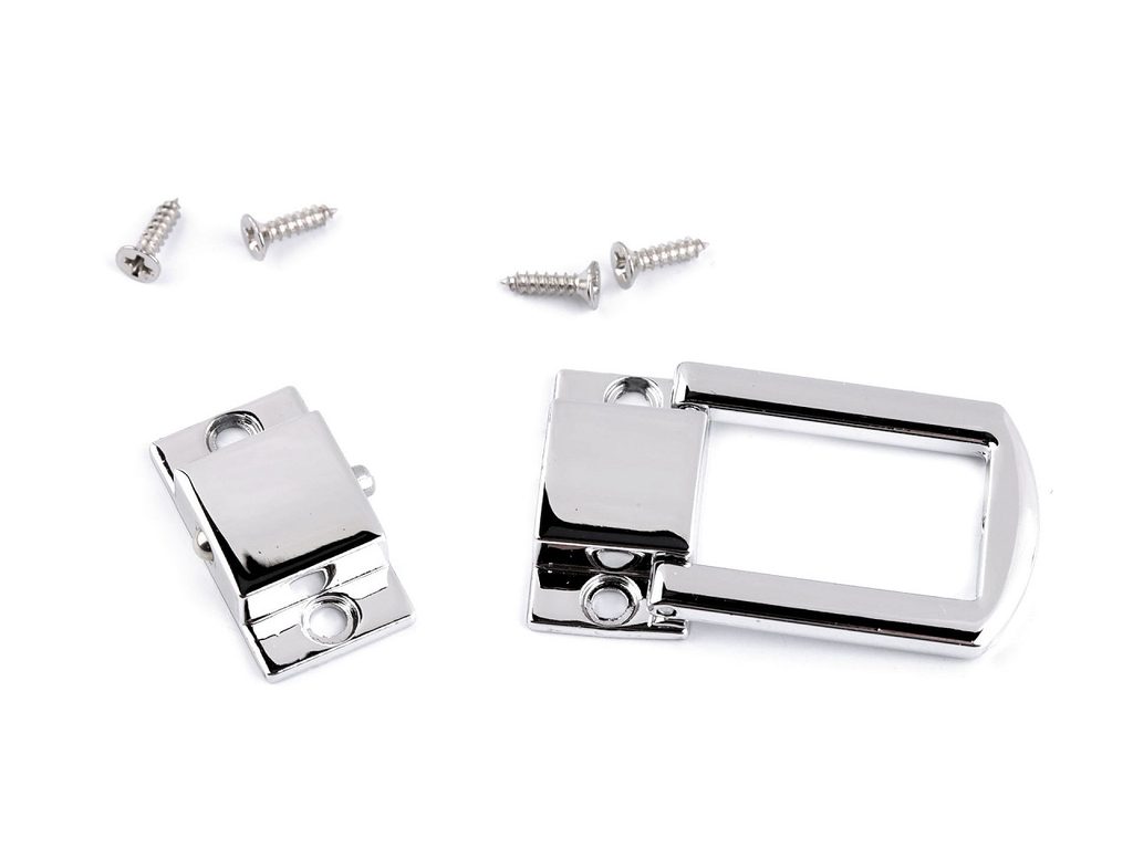 Kovové zapínání využijete na tašky, kufříky, krabičky, šperkovnice a bedýnky. Připevňuje se pomocí přiložených šroubků.Sada obsahuje kovové zapínání, které se skládá ze 2 kusů, a 4 šroubky.