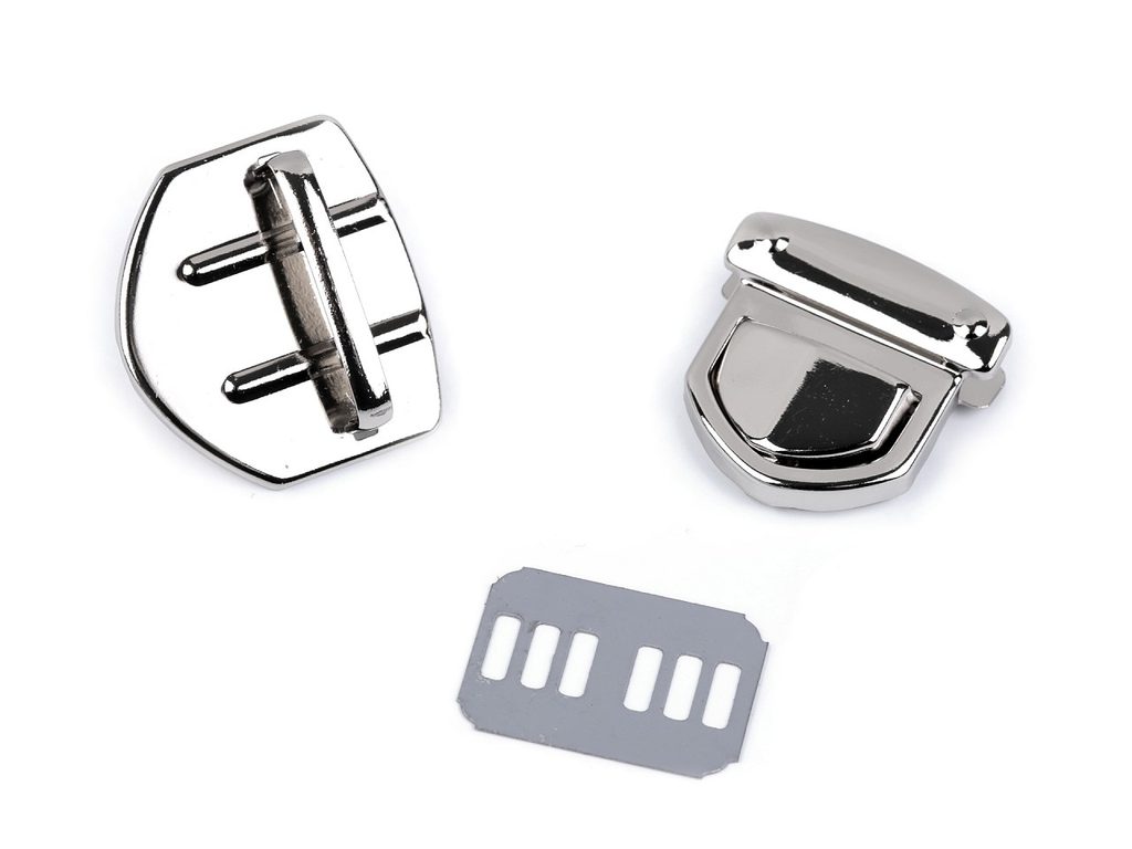 Klasické zapínání na kabelku či tašku se skládá ze tří dílů. Plíšek se připevní na vnitřní část tašky, díl s nožkami na vnější část (nožky se zaháknou do plíšku a roztáhnou) a třetí díl se zoubky na její chlopeň. Díl na chlopeň se upevní tak, že rozevřete čelisti, na kterých jsou zoubky a mezi ně vložíte materiál, na který chcete zapínání upevnit. Následně čelisti sevřete, zoubky tak zamezí pohybu látky.Rozměry: