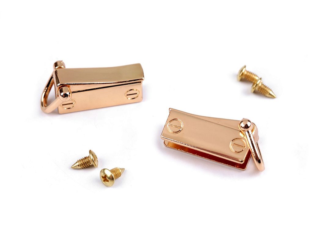 Klasické zapínání na kabelku či tašku se skládá ze tří dílů. Plíšek se připevní na vnitřní část tašky, díl s nožkami na vnější část (nožky se zaháknou do plíšku a roztáhnou) a třetí díl se zoubky na její chlopeň. Díl na chlopeň se upevní tak, že rozevřete čelisti, na kterých jsou zoubky a mezi ně vložíte materiál, na který chcete zapínání upevnit. Následně čelisti sevřete, zoubky tak zamezí pohybu látky.Rozměry: