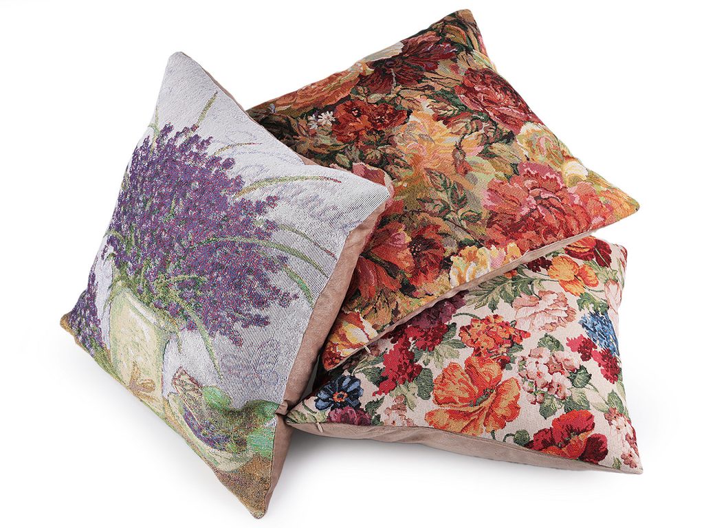 Povlaky na polštář s romantickými obrázky květů oživí a zútulní váš interiér. Zpracováním napodobují gobelín. Povlaky jsou jednostranné, zadní strana je jednobarevná, z jemného plyše. Pohodlně se zapínají na zip.Prodáváme pouze povlak bez výplně.