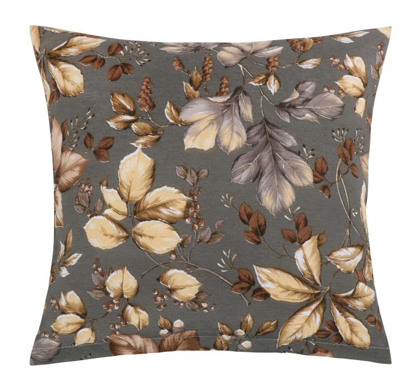 Nabízíme samostatný povlak, který povlečete na polštář, který již máte doma. Je také možné si u nás koupit výplňkový polštář, který vložíte do zakoupeného povlaku. Kvalitní materiál je příjemný na dotek, jeho pevnost zároveň zaručí dlouhou životnost. Pohodlné zapínání na zip usnadní převlékání. Rozměry povlaku jsou 45x45 cm.- Barva: Listí šedá, béžová, hnědá