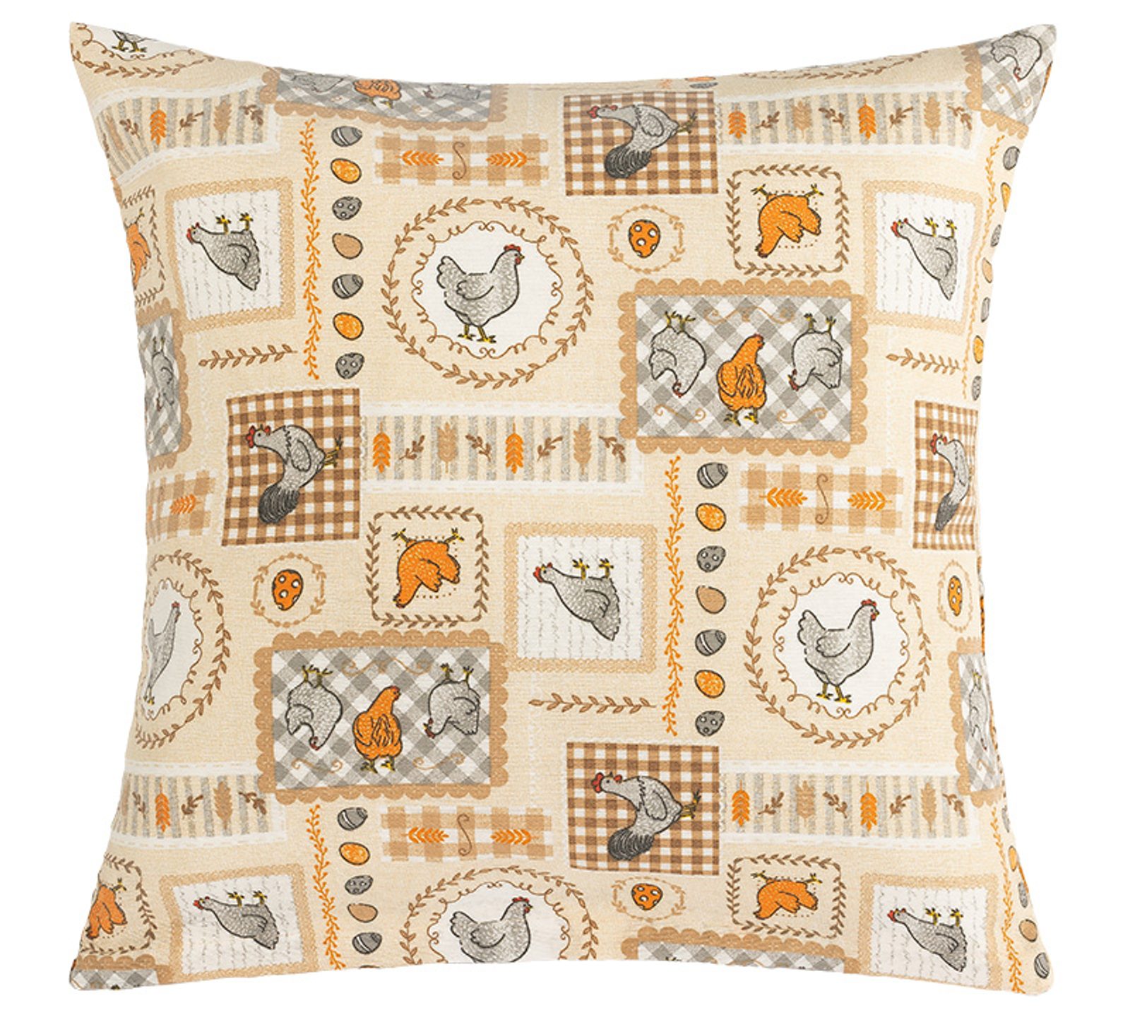 Nabízíme samostatný povlak, který povlečete na polštář, který již máte doma. Je také možné si u nás koupit výplňkový polštář, který vložíte do zakoupeného povlaku. Kvalitní materiál je příjemný na dotek, jeho pevnost zároveň zaručí dlouhou životnost. Pohodlné zapínání na zip usnadní převlékání. Rozměry povlaku jsou 45x45 cm.- Barva: Slepička béžová, šedá, oranžová