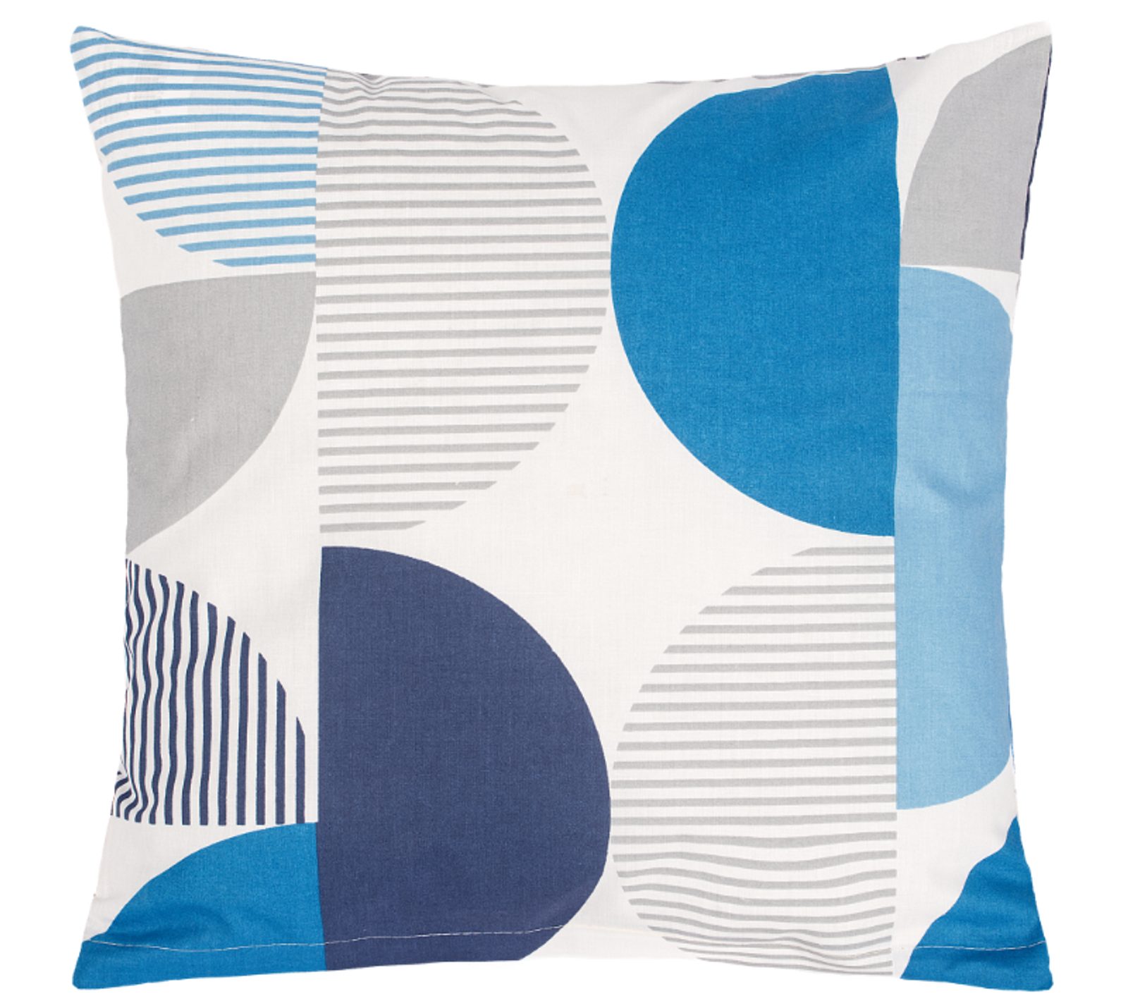 Povláček je opatřen zipovým uzávěrem.Povlaky na polštářky jsou šité z metráže, díky rozmanitosti vzoru může být každý povlak trochu jiný. Foto je pouze ilustrační.- Barva: modrý půlkruh