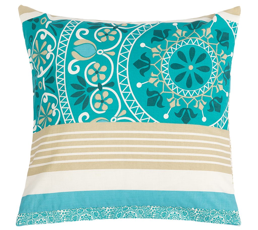 Povláček je opatřen zipovým uzávěrem.Povlaky na polštářky jsou šité z metráže, díky rozmanitosti vzoru může být každý povlak trochu jiný. Foto je pouze ilustrační.- Barva: tyrkysová mandala