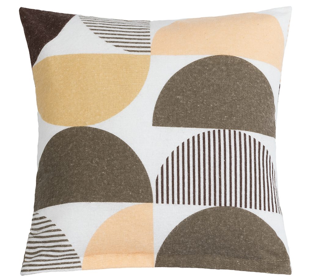 Povláček je opatřen zipovým uzávěrem.Povlaky na polštářky jsou šité z metráže, díky rozmanitosti vzoru může být každý povlak trochu jiný. Foto je pouze ilustrační.- Barva: Půlkruh hnědá, losos