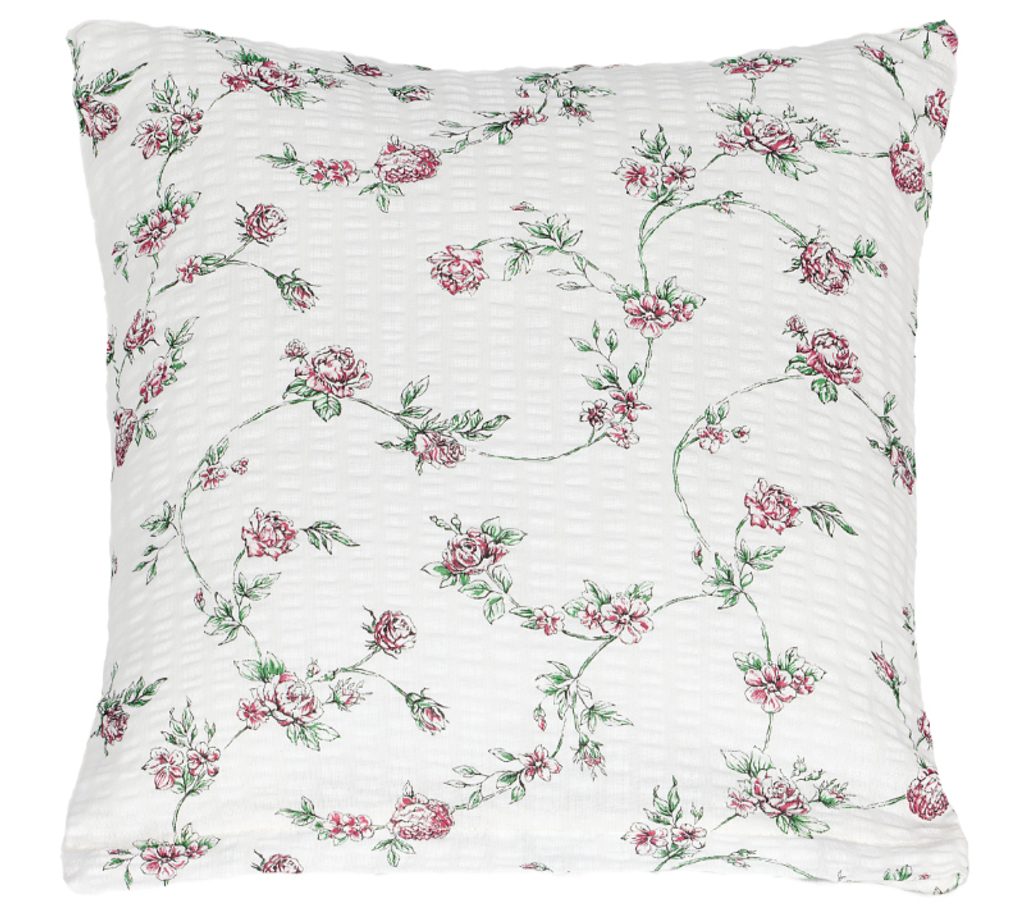 Povláček je opatřen zipovým uzávěrem.Povlaky na polštářky jsou šité z metráže, díky rozmanitosti vzoru může být každý povlak trochu jiný. Foto je pouze ilustrační.- Barva: pnoucí růže - růžová, zelená, bílá