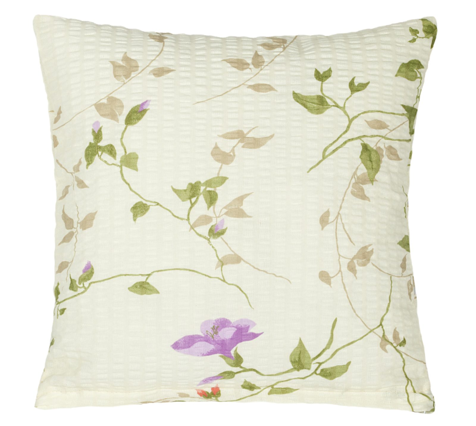 Povláček je opatřen zipovým uzávěrem.Povlaky na polštářky jsou šité z metráže, díky rozmanitosti vzoru může být každý povlak trochu jiný. Foto je pouze ilustrační.- Barva: fialky na smetanové