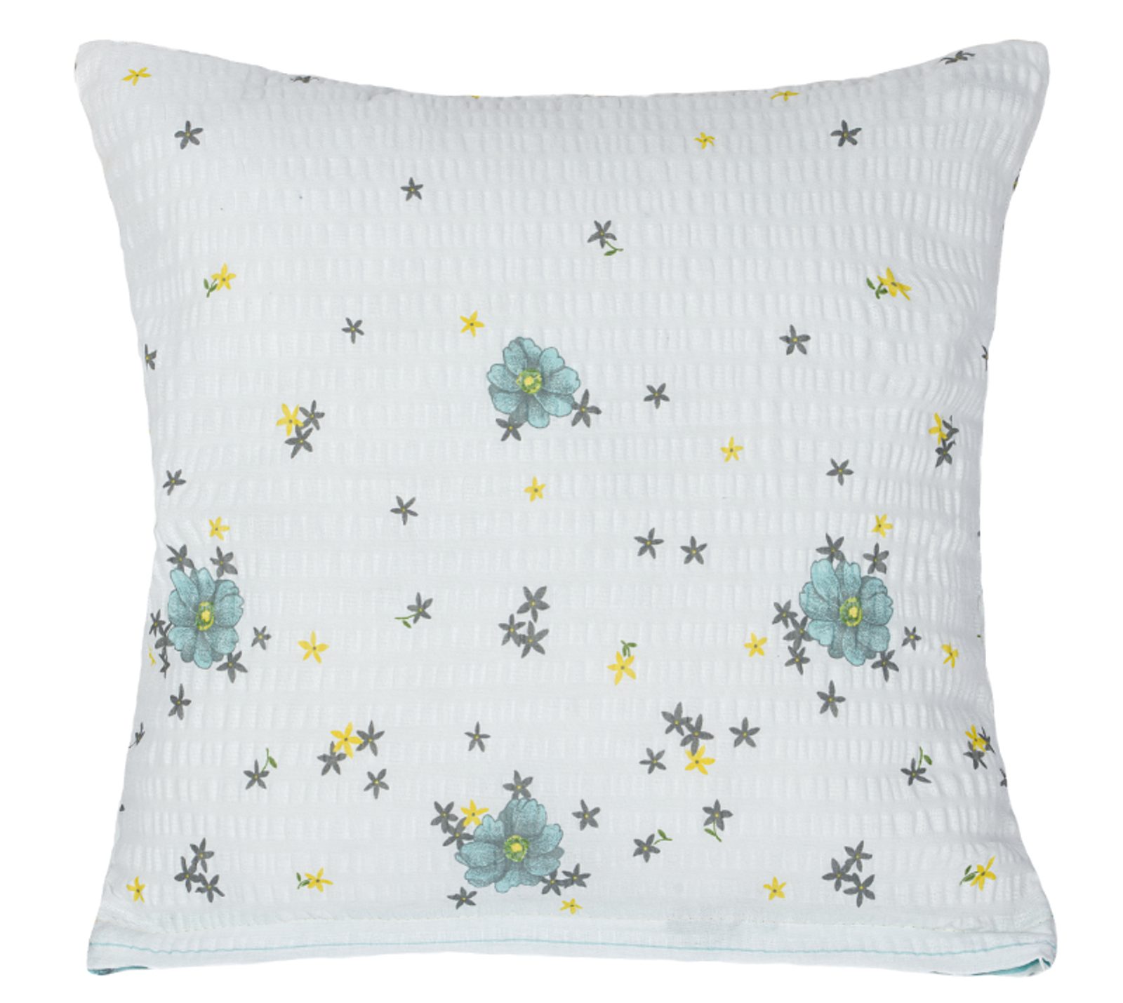 Povláček je opatřen zipovým uzávěrem.Povlaky na polštářky jsou šité z metráže, díky rozmanitosti vzoru může být každý povlak trochu jiný. Foto je pouze ilustrační.- Barva: tyrkysový květ s pruhem