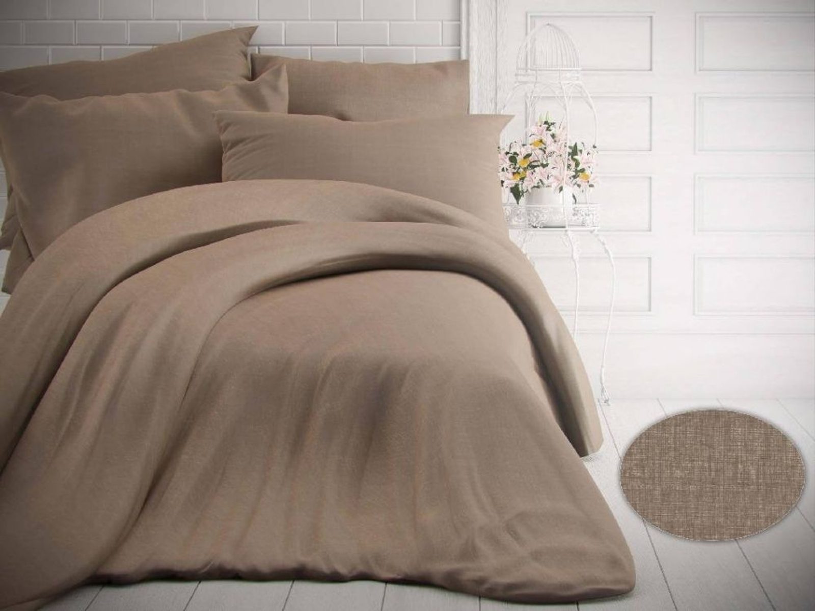 - Béžová barva bavlněného povlečení je pravdivá a díky použití reaktivních barviv je zároveň vysoce stálá.