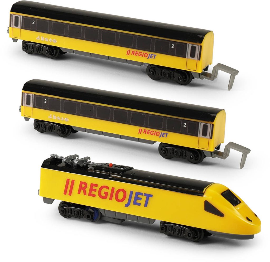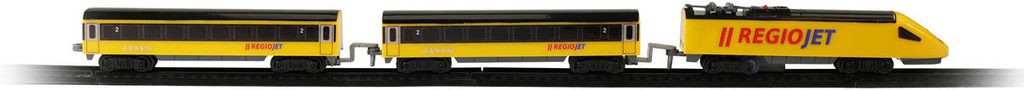 Vlak s kolejemi Mini RegioJet Naše železnice lokomotiva + 2 vagony na baterie