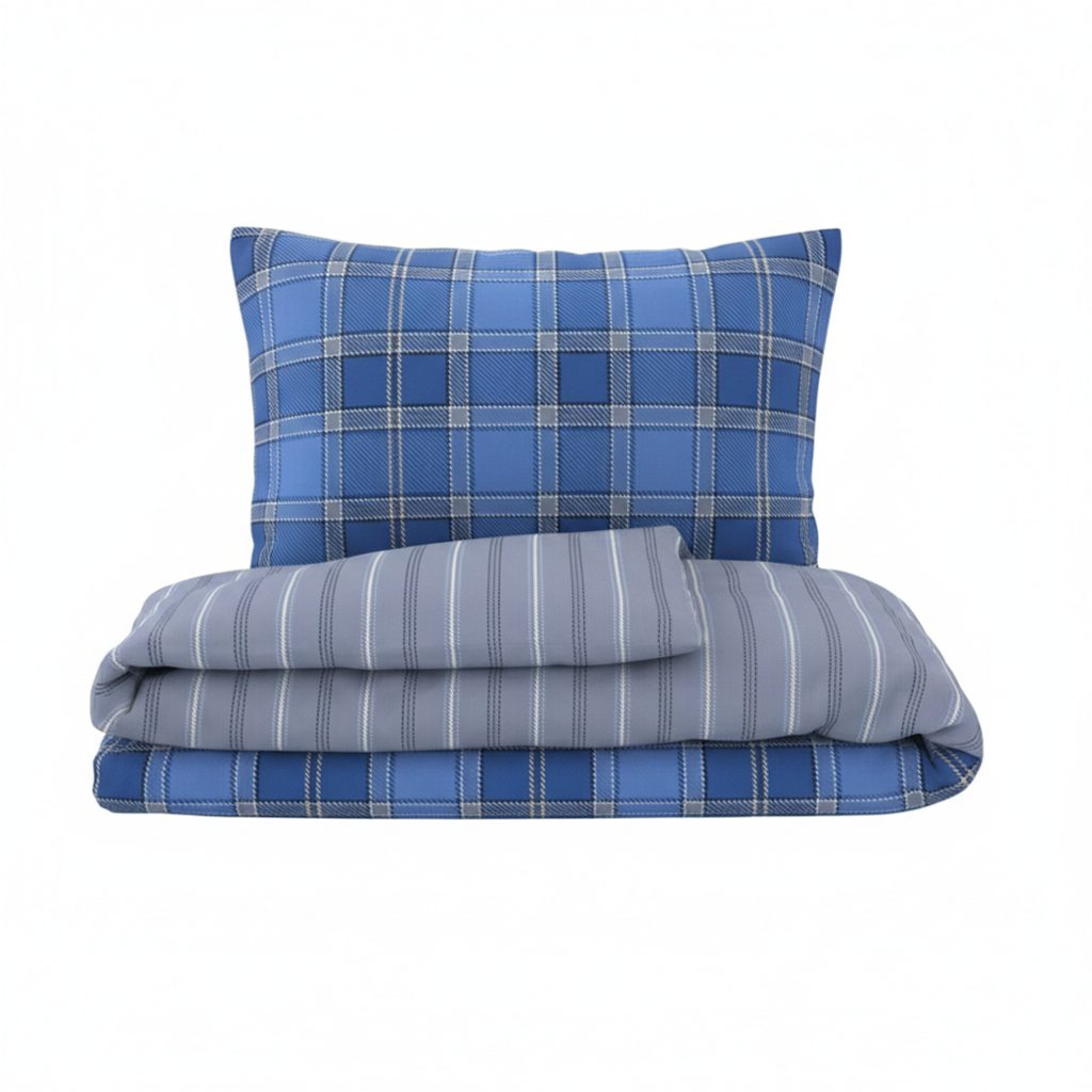 Ložní povlečení je vyrobeno z velmi jemné tkaniny s vysokou hustotou jemných přízí. Bavlněné povlečení CAMPUS modré zdobí nestárnoucí motiv proužků a kostek v kombinaci šedé a modré.