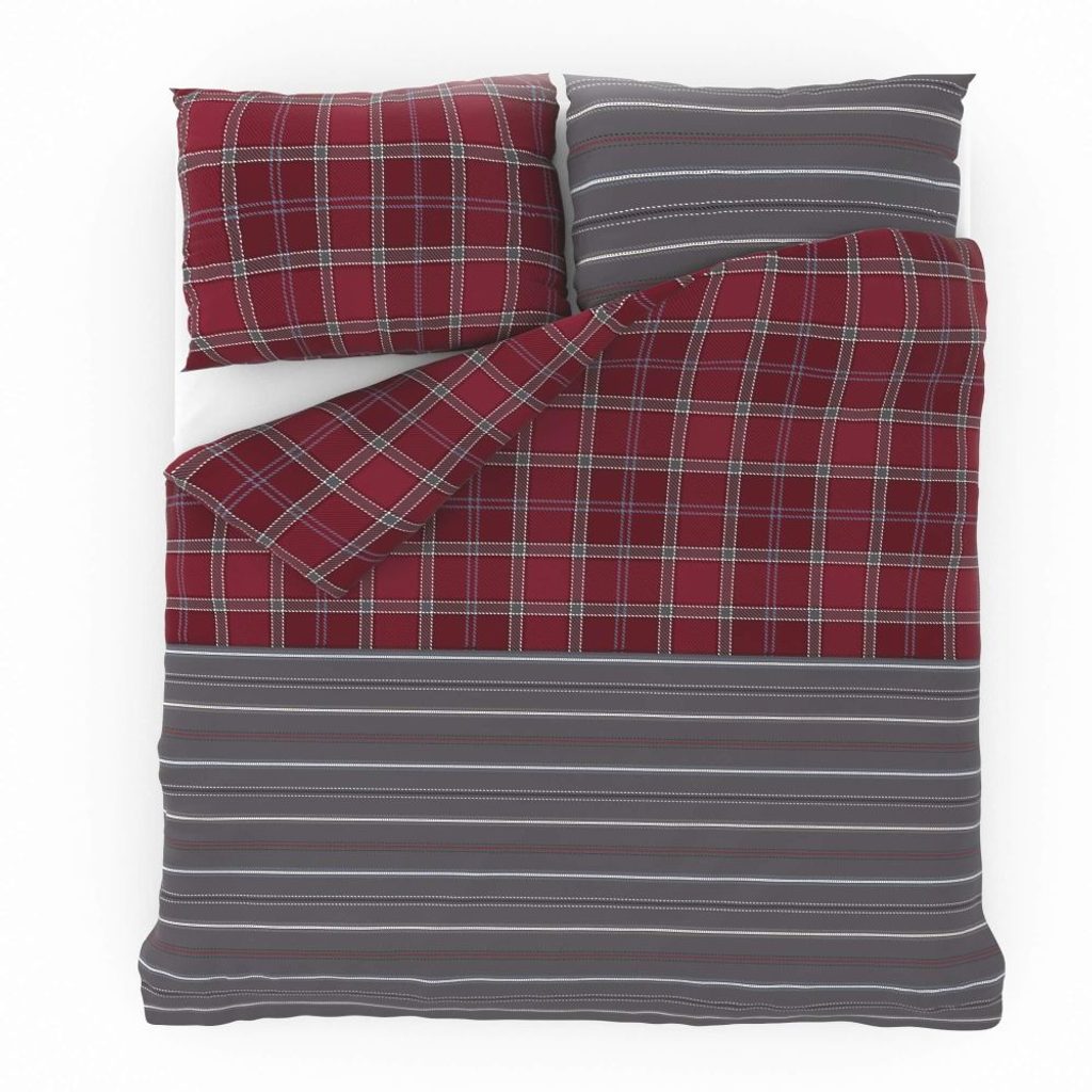 Ložní povlečení je vyrobeno z velmi jemné tkaniny s vysokou hustotou jemných přízí. Bavlněné povlečení CAMPUS šedé zdobí nestárnoucí motiv proužků a kostek v kombinaci šedé a červené.