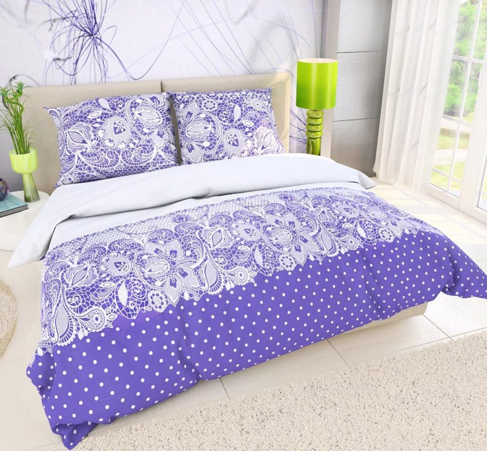 - Barva povlečení: vzor fialový, podklad bílý