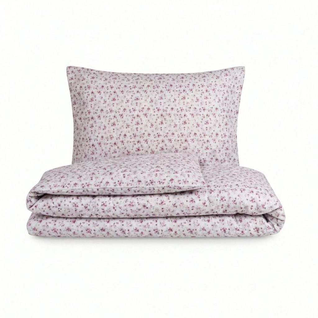 Základem povlečení Violeta je 100% bavlna v plátnové vazbě. Používáme tkaninu s vysokou hustotou dostavy jemných přízí, což přináší zásadní výhody: