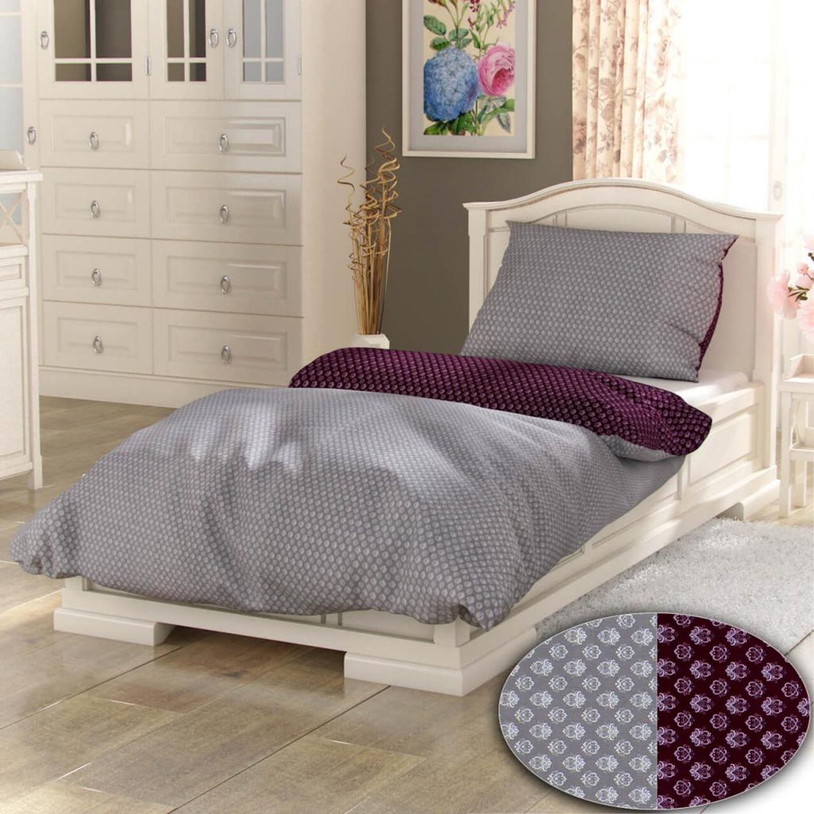 Francouzské bavlněné povlečení PROVENCE COLLECTION 220x200, 70x90cm Bouquet šedý od značky Kvalitex je součástí kategorie Povlečení bavlněné. Skladem expedujeme do 14:00, doprava zdarma od 2 999 Kč, vrácení i výměna bez starostí. Cena 1 389 Kč je včetně DPH.