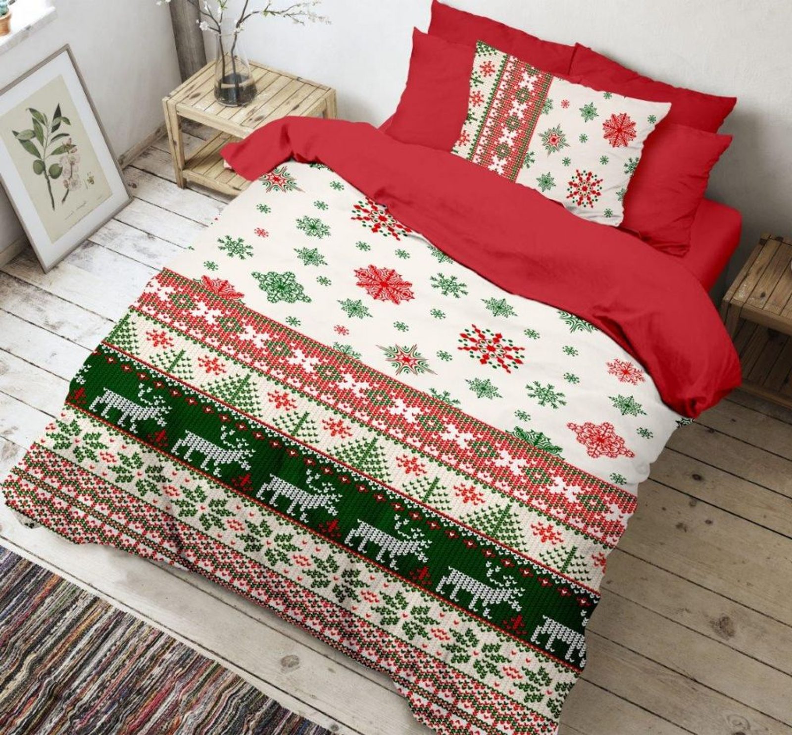 Barva povlečení: horní strana (motiv) bílá, béžová, červená, zelená, spodní strana jednobarevná červená