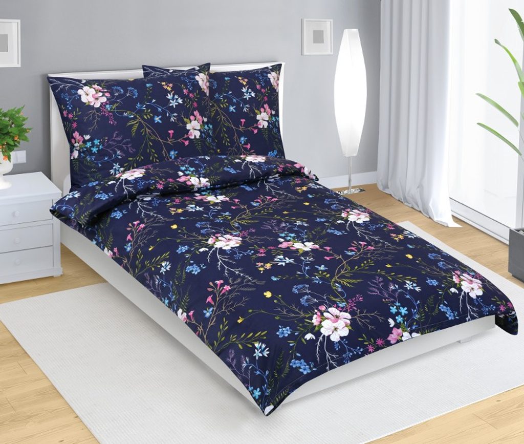 Povlečení bavlněné Tmavě modrá,Růžová 90/597