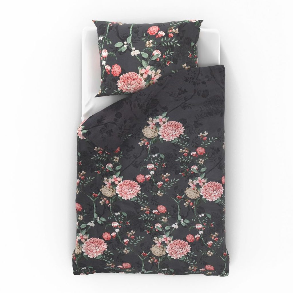 Ložní povlečení je vyrobeno z bavlněné tkaniny atlasové vazby. Tkanina je charakteristická vysokou dostavou velmi jemných přízí, tedy pevnost tkaniny je zachována, ale právě díky husté dostavě tkaniny je povlečení hřejivé a velmi příjemné na omak. Na bavlněném saténu je desén daleko pestřejší a barvy na této tkaninové vazbě velmi vyniknou a to i díky mercerizaci. Mercerizace je úprava, která mění ledvinkovitý průřez bavlněného vlákna na kruhový. Tento tvar odráží lesk ze všech úhlů a barvy jsou tedy výrazné.