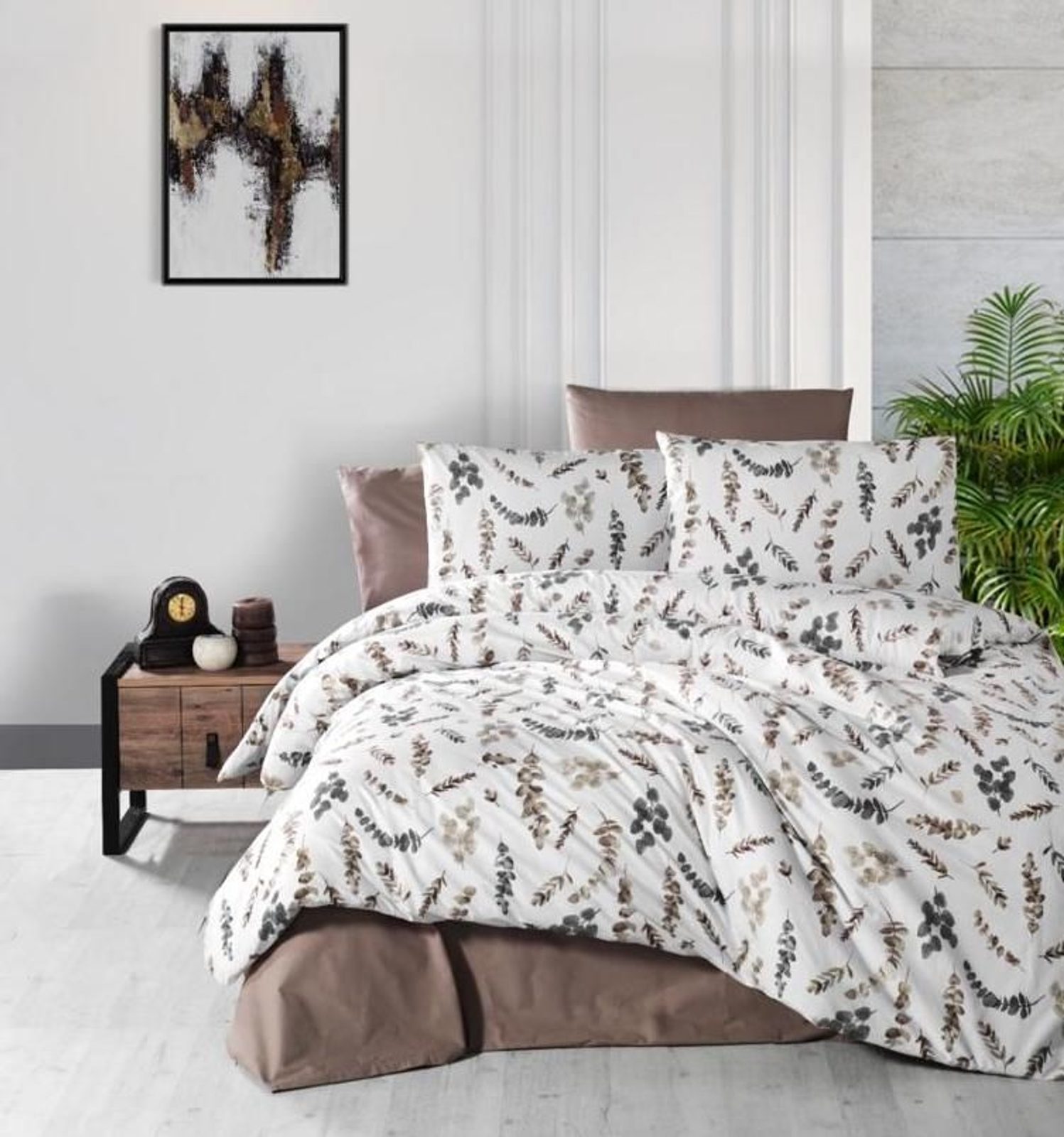 Flanelové povlečení 140x200, 70x90cm VĚTVIČKA hnědá