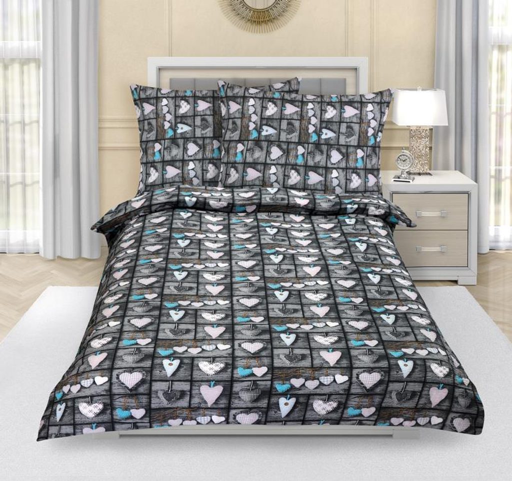 Povlečení krepové - 140x200,70x90 cm srdce patchwork šedé naleznete v kategorii: Povlečení krepové 140x200
