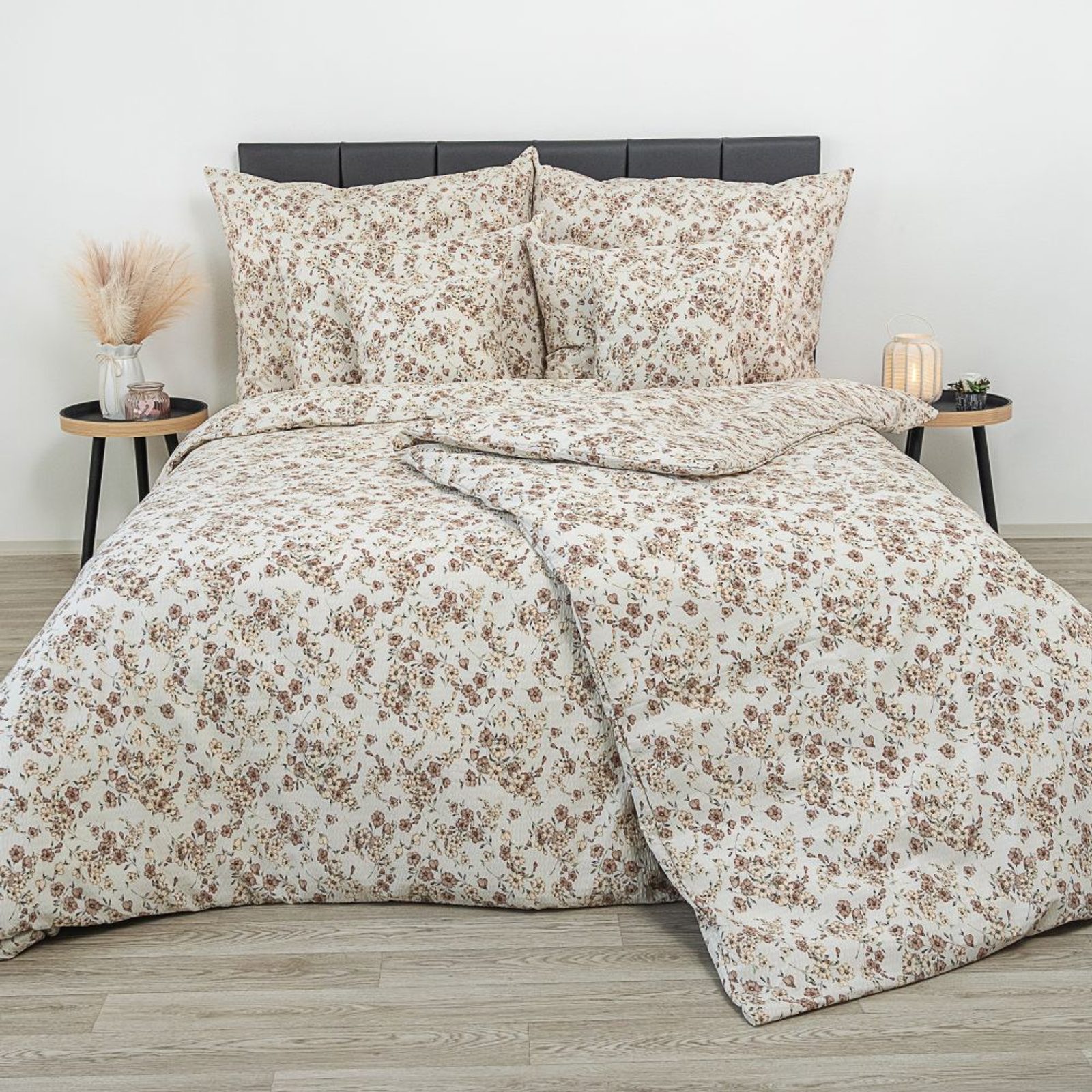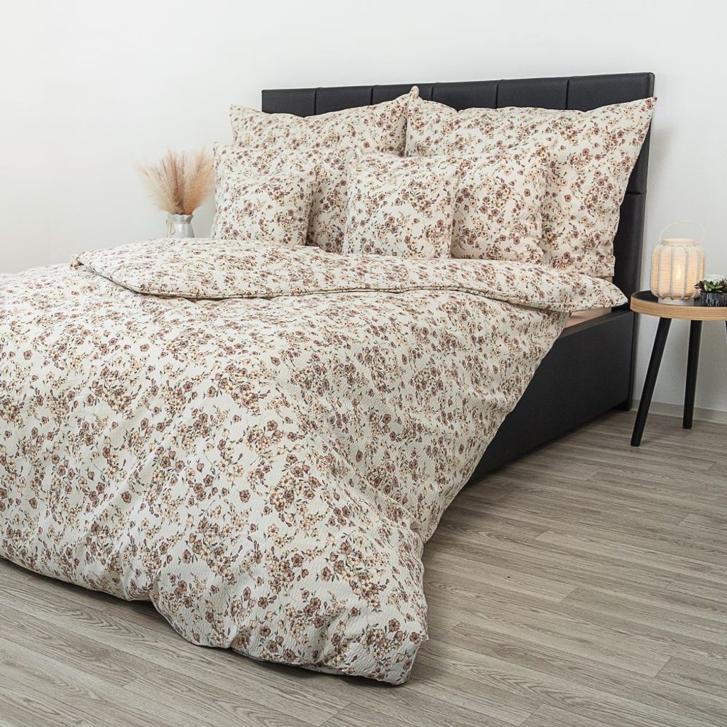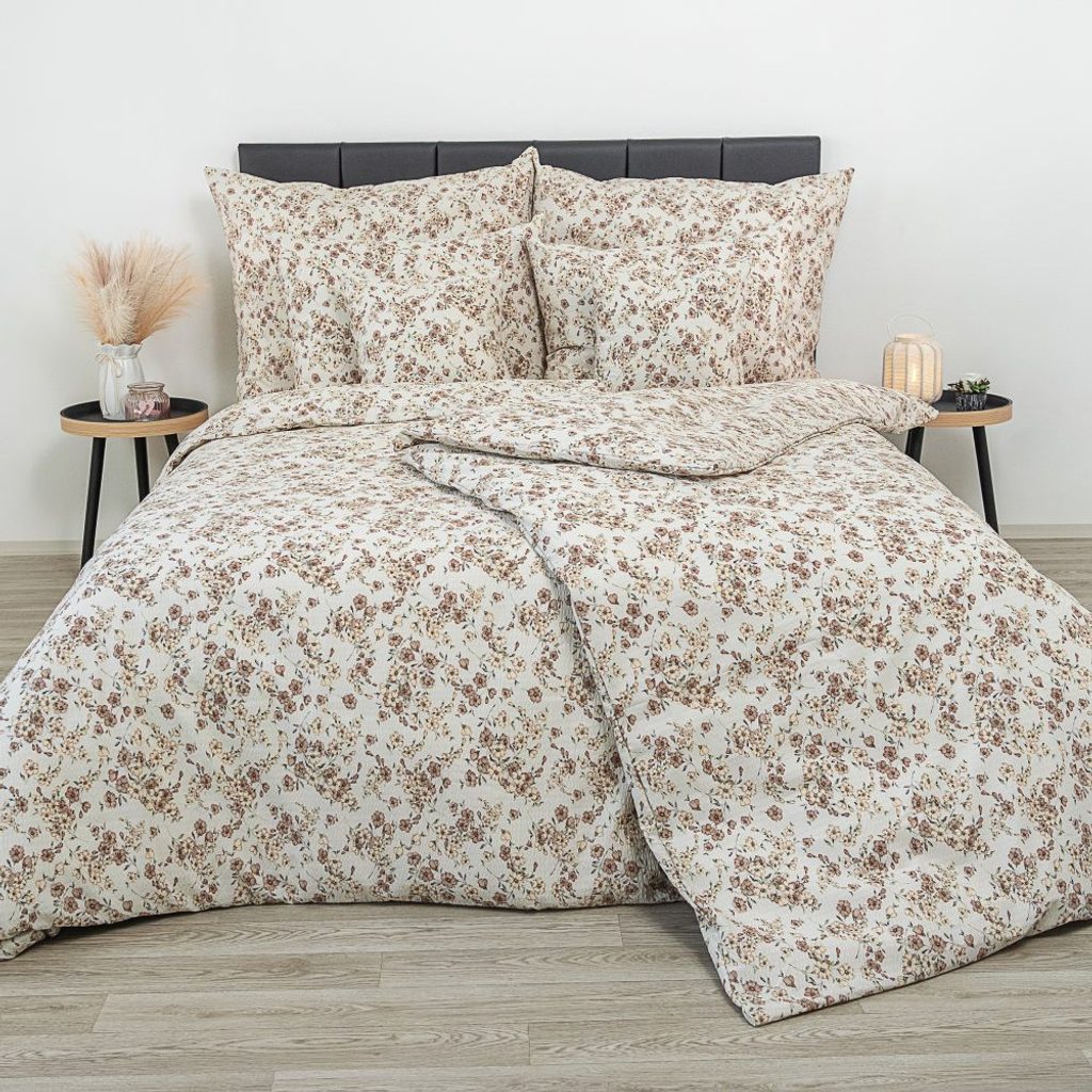 Prodloužené krepové povlečení 140x220, 70x90cm Kvítí béžové