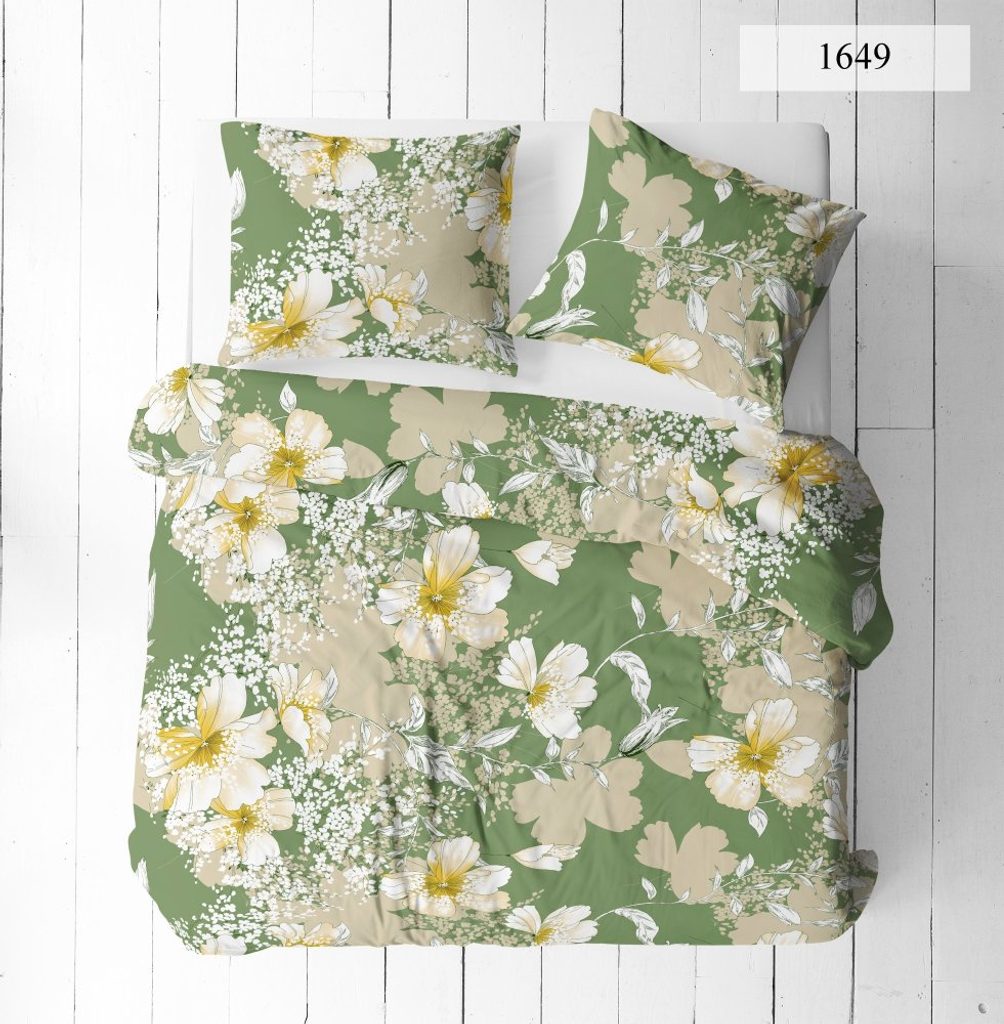 Praktický zipový uzávěr zjednodušuje výměnu povlečení. Krepové povlečení zdobí oboustranný vzor velkých květů na zeleném podkladu.