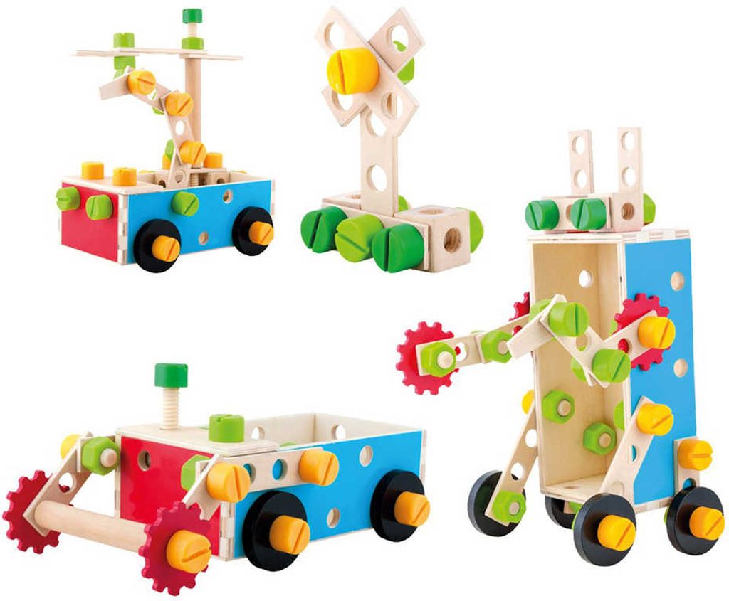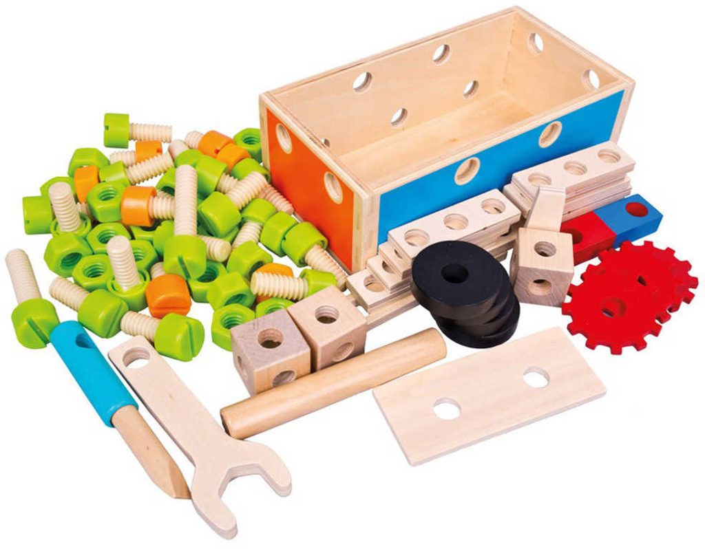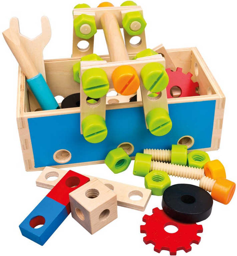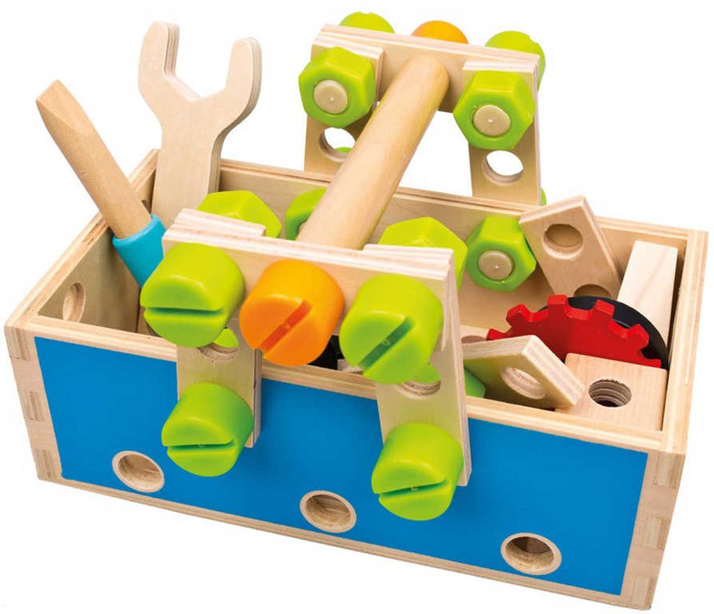 Dřevěnou přepravku s nářadím musí mít každý malý kutil. Z přepravky lze vyrobit nepřeberné množství skládaček dle fantazie malého kutila, např. autíčko, robot, zvířátko a mnoho dalších. Tvořivosti