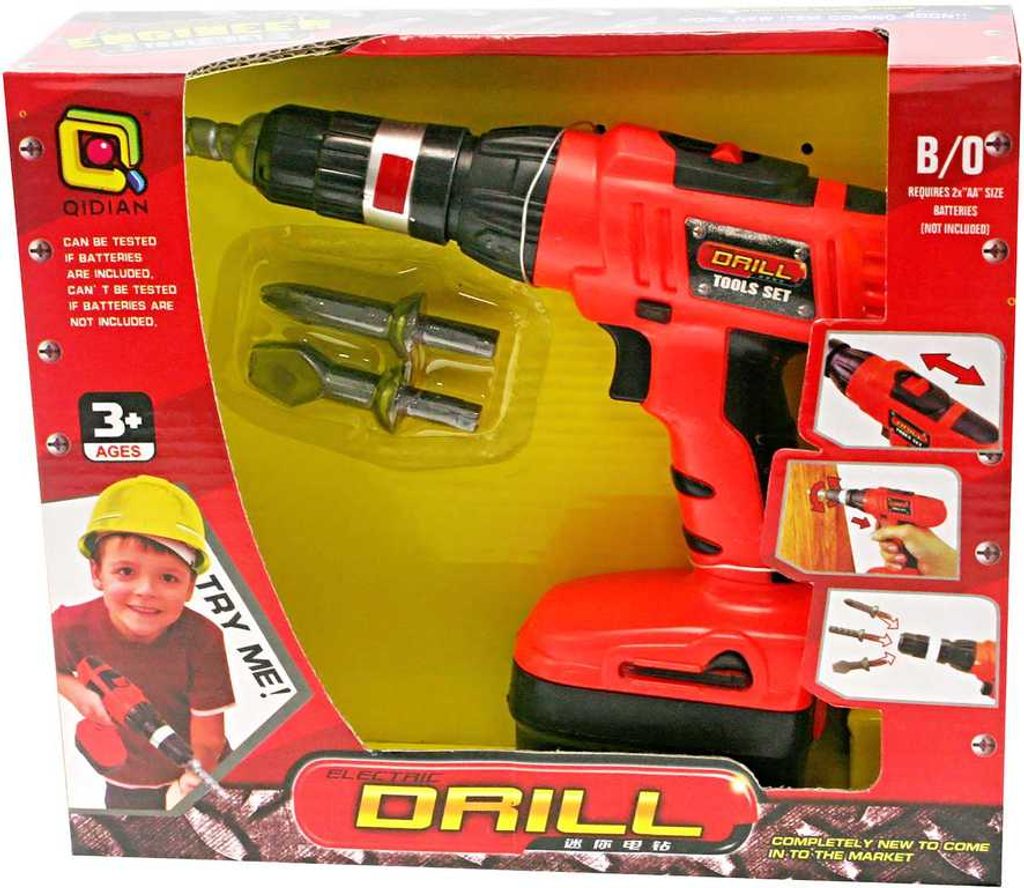 Vrtačka aku dětská červená 21cm na baterie set se 2 extra vrtáky v krabici