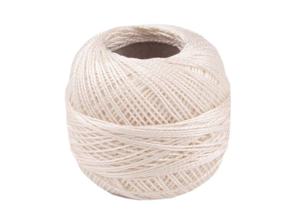 Česká vyšívací příze Perlovka (100 % bavlna, 85 m, 0,5 mm) – stálobarevná a jemně lesklá, ideální pro háčkování, pletení i vyšívání.