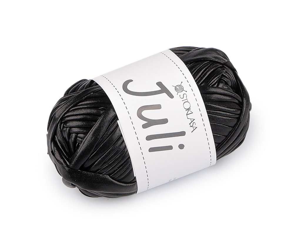 Příze Juli má efektní metalický lesk, který dodá exkluzivitu každému výrobku. Příze je elastická a měkká a dobře se s ní pracuje. Můžete z ní uplést či uháčkovat kabelky, batůžky, košíčky, peněženky, ale dají se z ní tvořit i zajímavé šperky.Šíře příze v nataženém stavu je cca 17 - 20 mm.