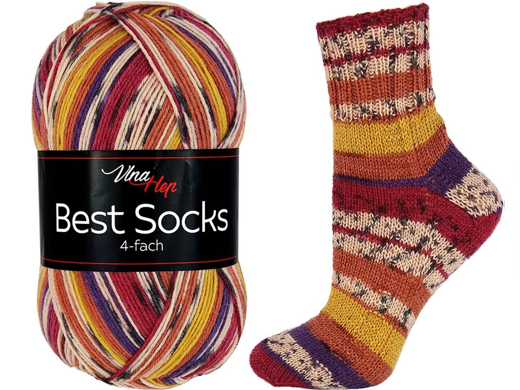 Pletací příze Best Socks se pyšní kvalitou a vysokým podílem hřejivé vlny. Je samovzorovací a perfektně se tak hodí na pletení ponožek. Jedno klubíčko vyjde na jeden pár.