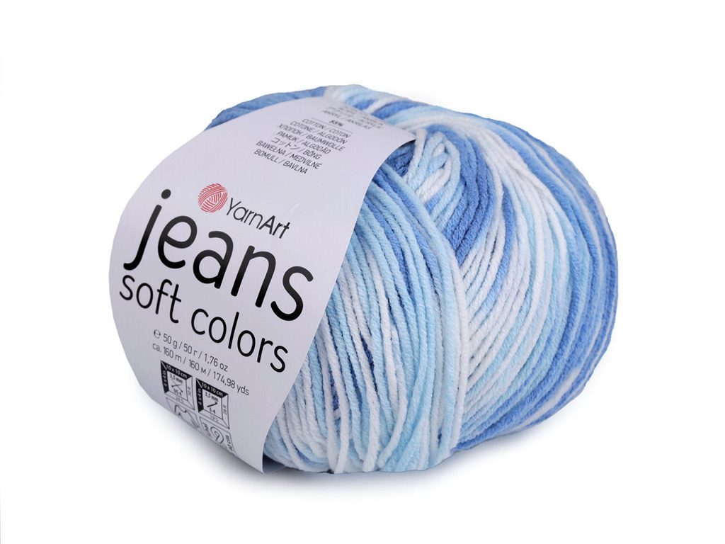 Pletací příze Jeans Soft Color je měkká a ve větší míře se skládá z bavlny, díky tomu je příjemná na dotek. Melírovaný efekt dodává výrobkům šmrnc a neotřelý vzhled. Příze je vhodná na pletení či háčkování lehkých svetříků, šátků, ponožek apod.Velikost jehlic: 3,5