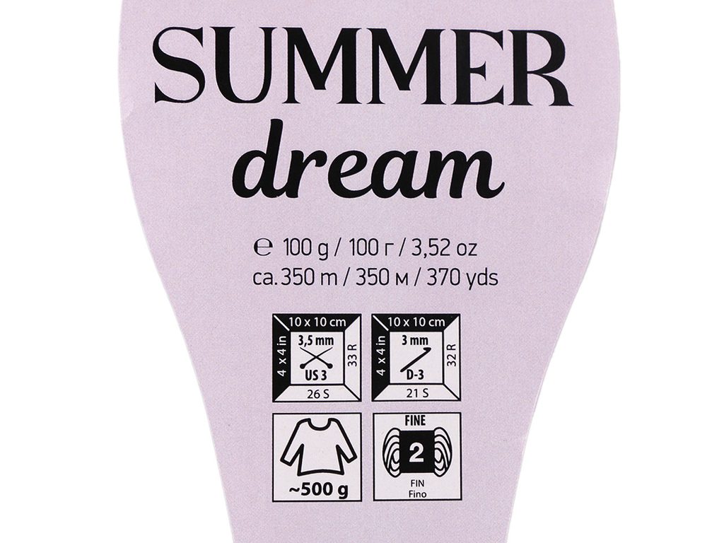 Pletací příze Summer Dream je díky bavlně příjemná na dotek a díky lesklé viskóze má chladivý efekt. Melírované zabarvení dodává výrobkům šmrnc a neotřelý vzhled. Příze je vhodná na pletení či háčkování lehkých svetříků, šátků, halenek apod.Velikost jehlic: 3,5