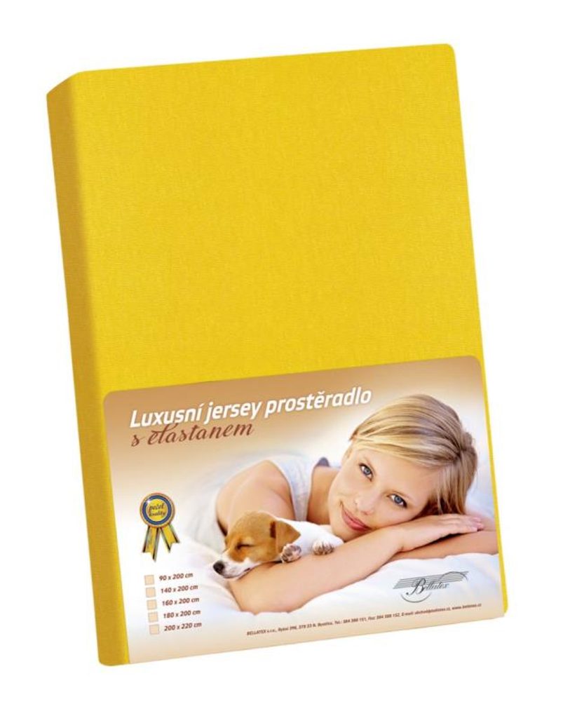 Prostěradlo jeseyové s elastanem 165g/m2 ,pruží, drží tvar na matraci,je hladké.Výška rohu 25 cm.Doporučujeme.- Barva: sytá žlutá