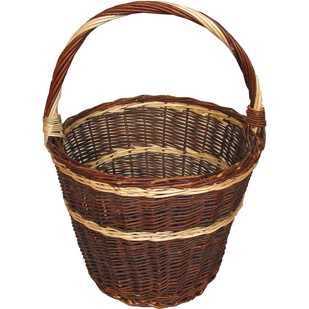 Košík je vhodný na sběr zeleniny atd. Je vyroben z neloupaného vrbového proutí. Průměr košíku je 32 cm, výška 28 cm, celková výška s uchem 49 cm.