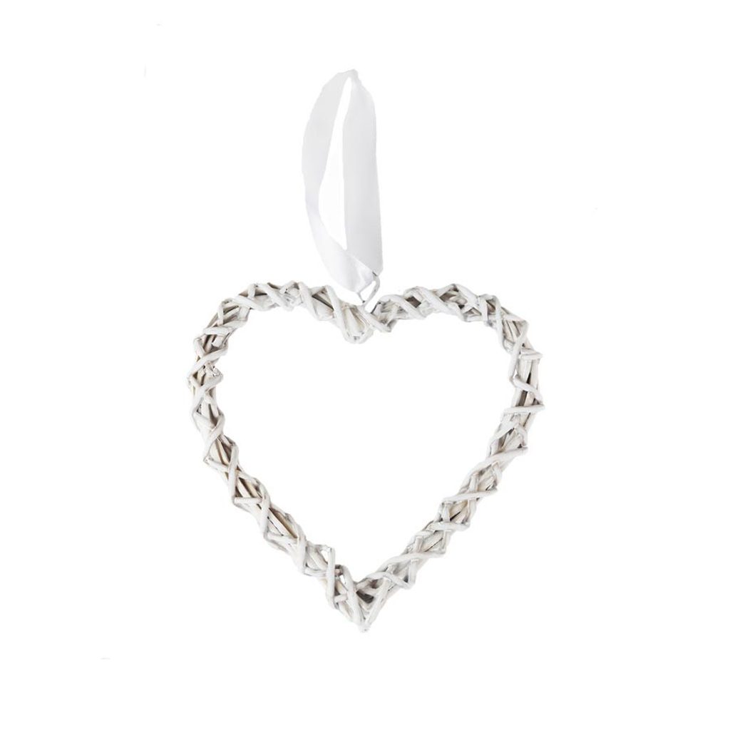 Dekorační srdce k zavěšení. Rozměry : 15 x 15 cm, tloušťka 2 cm. Barva : bílá. Materiál : proutí, drát.Rozměr: 15 × 15 x 2 cm