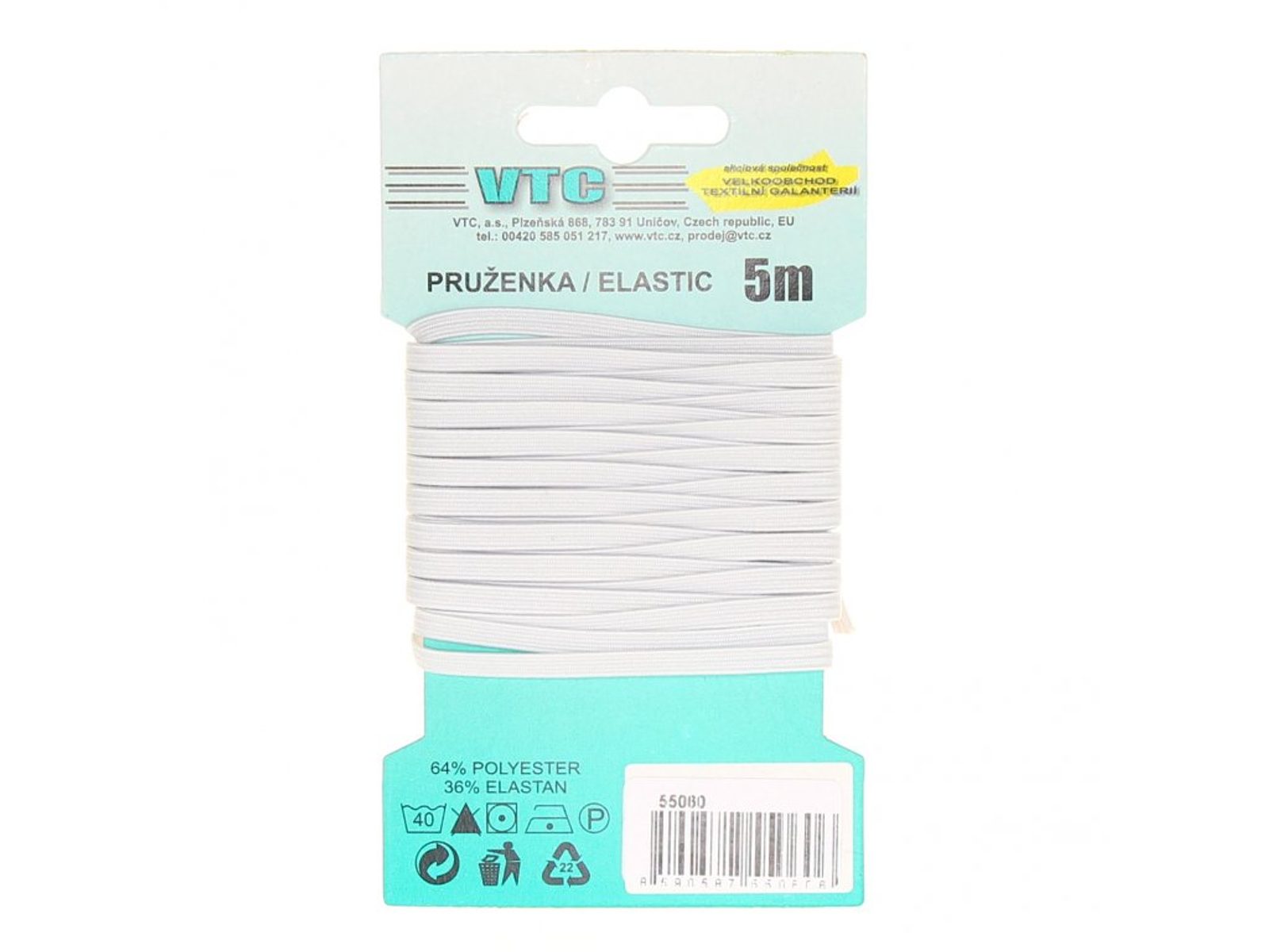 Guma prádlová, šíře cca 5,3 mm, tažnost 100-110 %, návin 5 m. Český výrobek
