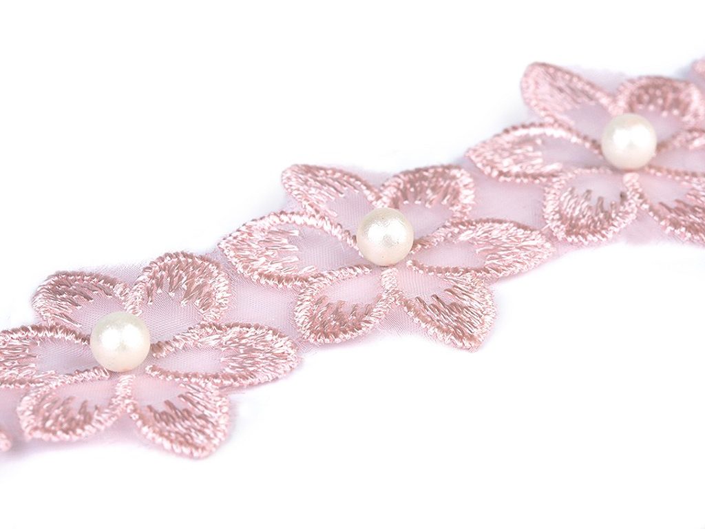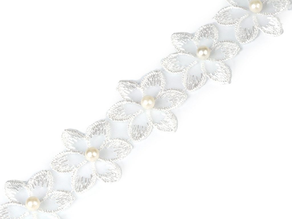 Prýmek květ s perlou na monofilu šíře 35 mm METRÁŽ