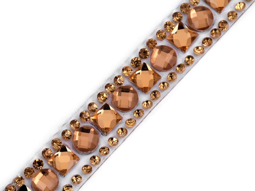 Prýmek se skleněnými broušenými kamínky šíře 12 mm nažehlovací METRÁŽ