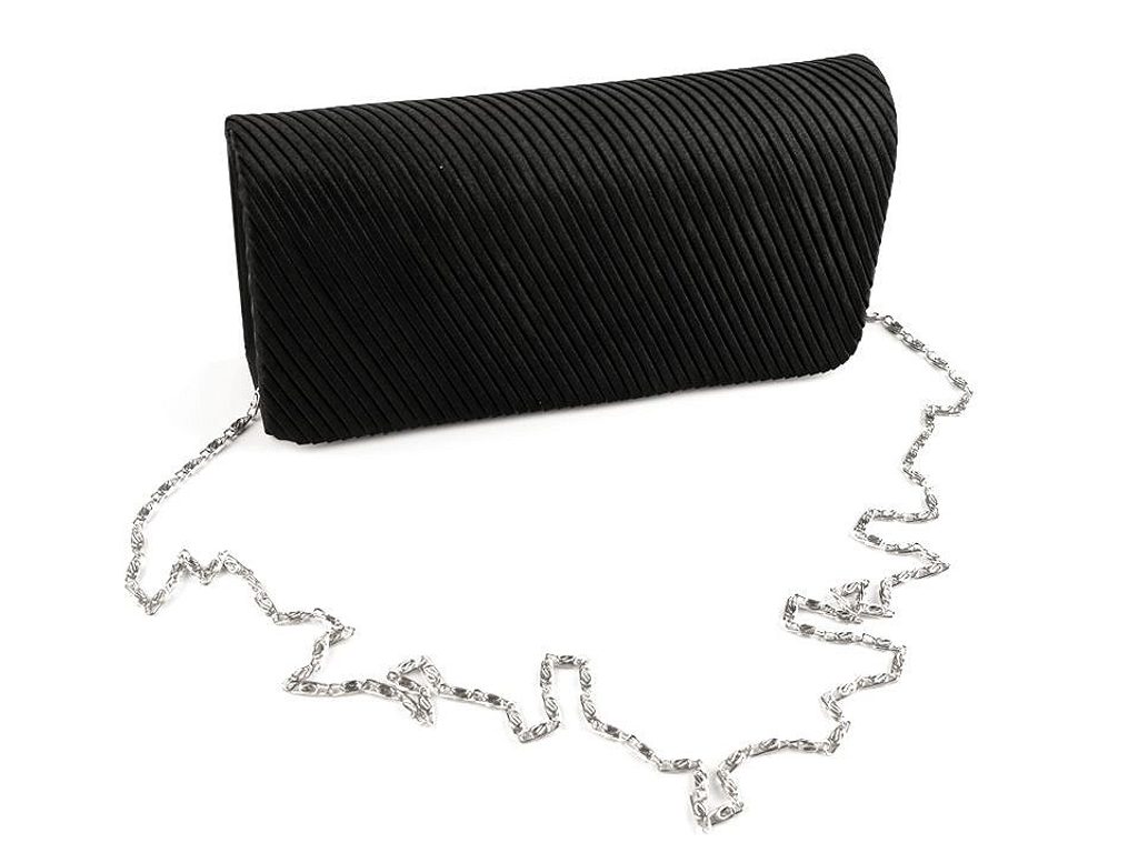 Saténová kabelka - psaníčko je elegantním doplňkem na různé slavnostní události. Látka na její přední straně je nařasená. Kabelka je vyztužená, dobře drží tvar. Uvnitř je polyesterová podšívka a malá kapsička na drobnosti. Zapíná se na magnet. Součástí kabelky je odepínatelný řetízek. Psaníčko můžete nosit s řetízkem přes rameno nebo bez něj jen tak v ruce.- Rozměry (ŠxVxH):: 20 x 10 x 5 cm