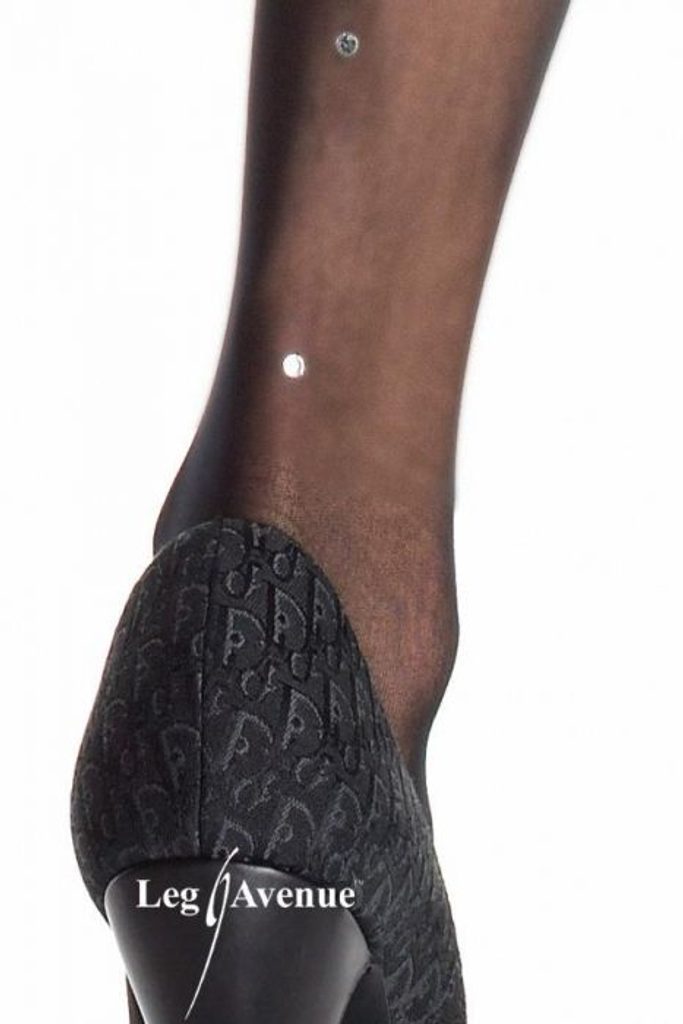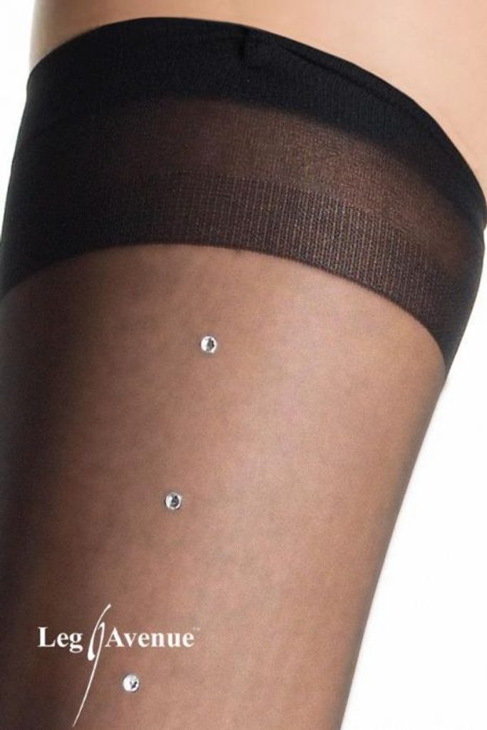 Dámské punčochy od značky Leg Avenue. Linie ozdobných kamínků na zadní straně zdůrazní svůdné kouzlo ženských nohou. Punčochy jsou zakončeny elastickým lemem.