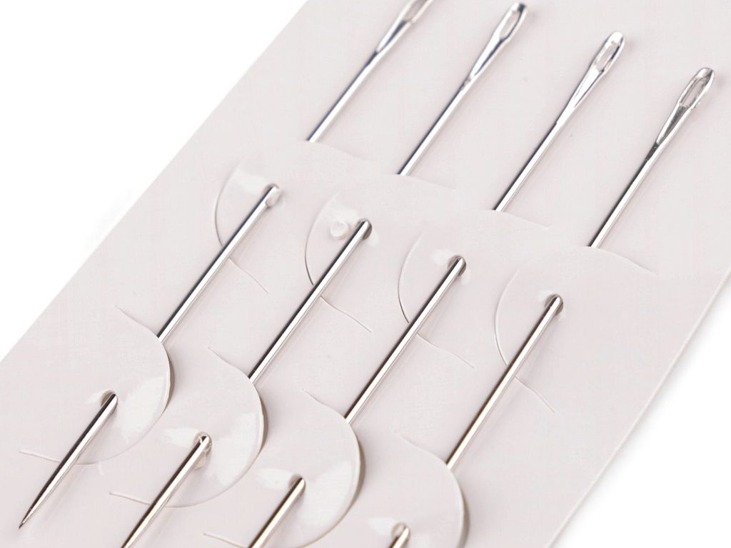 Dlouhé jehly jsou vhodné na ruční šití i látání. Mají ostrou špičku a větší očko.