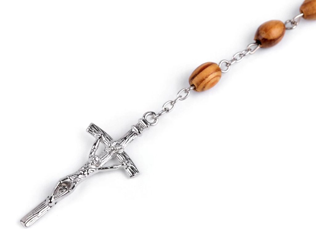 Ketlovaný růženec s dřevěnými korálky vás potěší především svým příjemným přírodním designem. Je dostatečně dlouhý, dá se přetáhnout přes hlavu, můžete jej nosit na krku.Horní část má rozdělenou na 5 skupin po deseti korálcích. Dole je růženec zakončený kovovým křížkem.