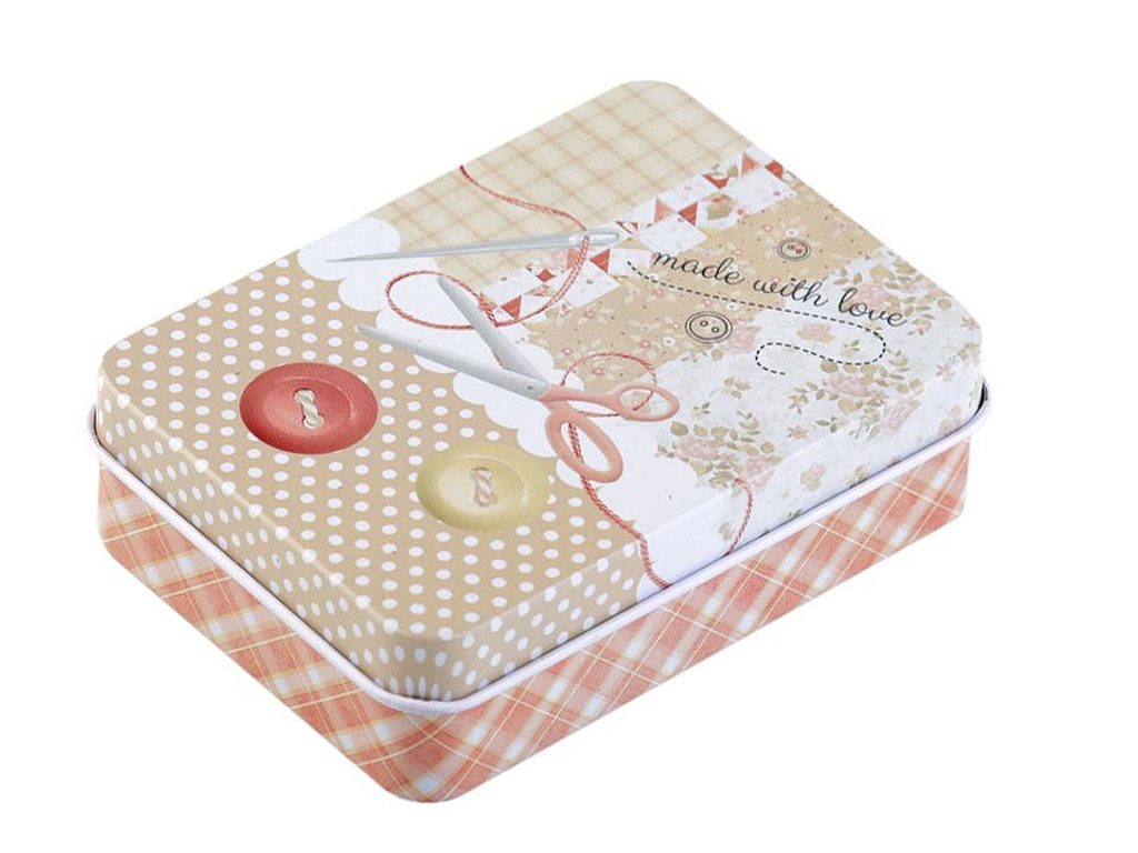 Plechová krabička na šicí potřeby