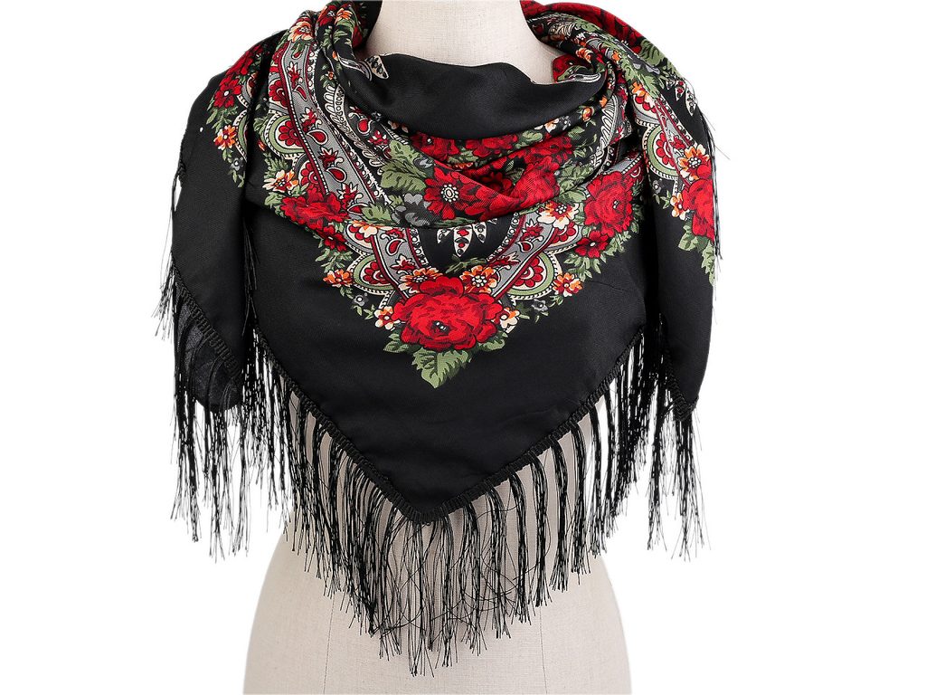 "Velký folklórní šátek jako z dob našich babiček. Skvěle doplní každý outfit a je velmi variabilní v nošení."
