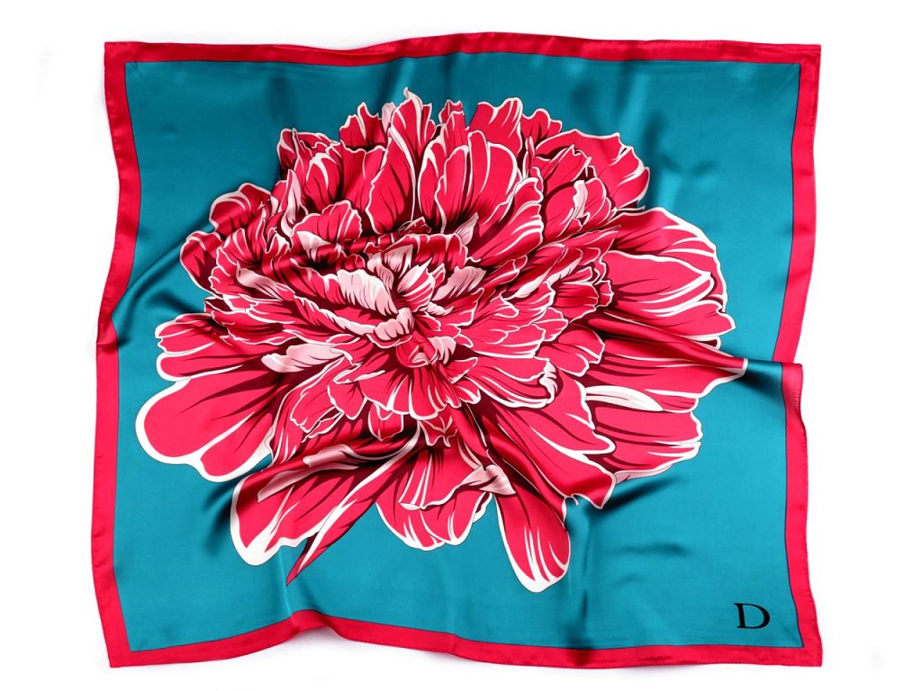 Velký saténový šátek s květy 130x135 cm