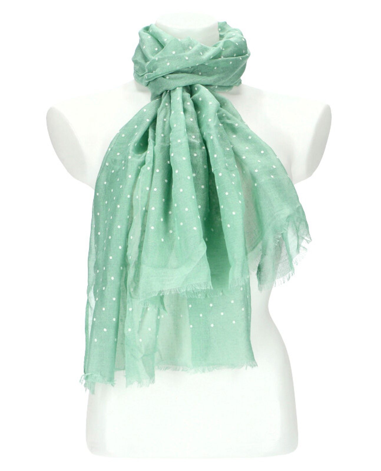 Dámský letní jednobarevný šátek s puntíky 180x69 cm zelená