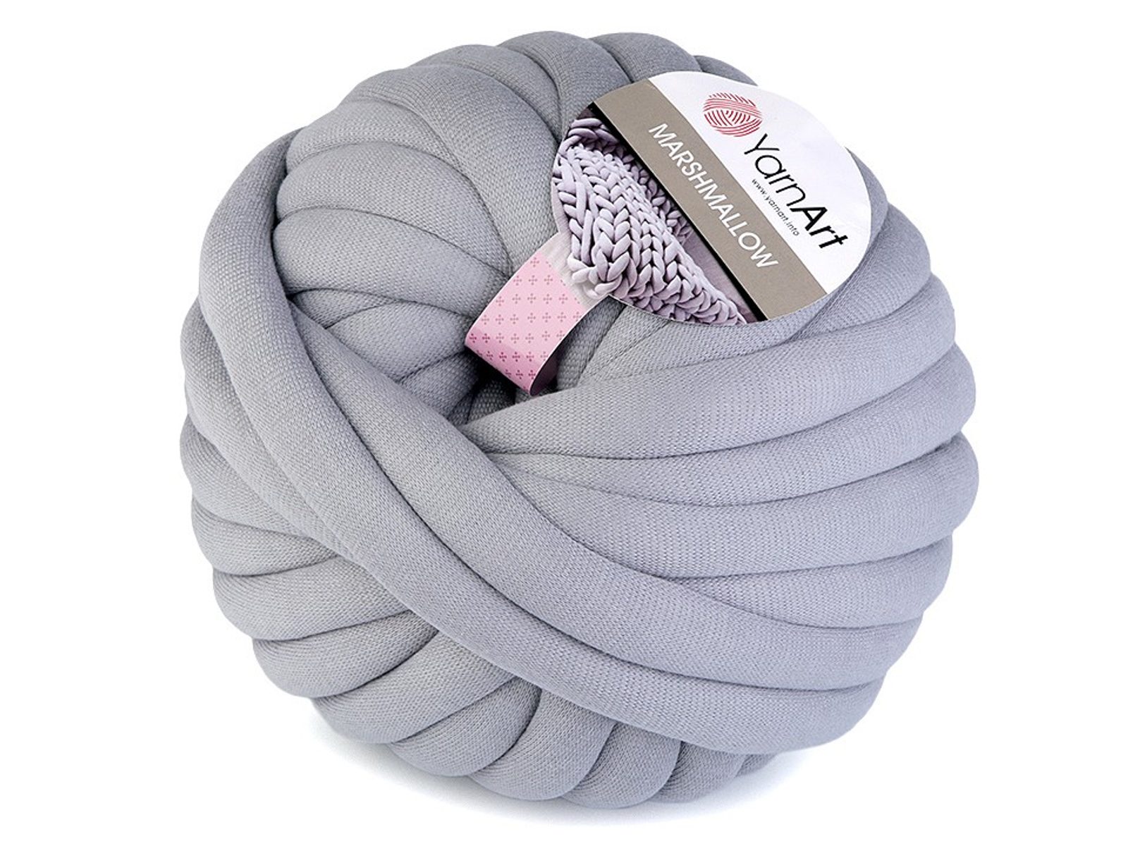 Silná příze Marshmallow je objemná, ale lehká. Tvoří ji tunýlek pletený z jemné hladké bavlny vyplněný vláknem. Tunýlek je bez švu. Dobře se vám s ní bude pracovat velkými jehlicemi nebo rukama. Na etiketě je přiložena šicí niť v barvě příze.