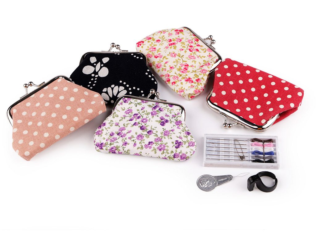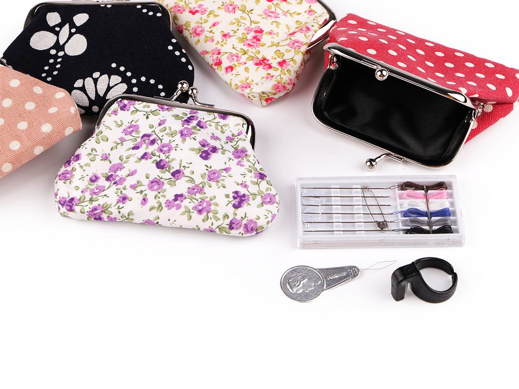 Cestovní šitíčko se hodí mít na každou dovolenou. Je uložené v malé peněžence s kovovým rámečkem. Vejde se do každé dámské kabelky, prakticky jej můžete mít stále u sebe i ve všední dny.Sada obsahuje: plochou krabičku s 6 jehlami s navlečenými nitěmi, 2 transparentní knoflíčky Ø10 mm a spínací špendlík. Dále uvnitř peněženky najdete navlékač nití a náprstek s odstřihovačem nití.