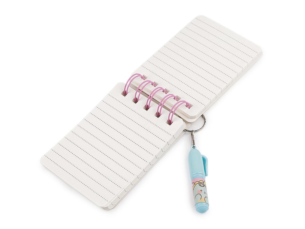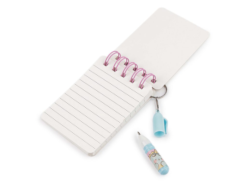 Malý blok / zápisník linkovaný s mini propiskou je ideálním společníkem pro malé školáky i kreativce. Linkované stránky poskytují perfektní prostor pro psaní poznámek nebo zaznamenávání důležitých myšlenek. Součástí bloku je i praktická propiska, která je připevněná pomocí kroužku ke spirálové vazbě, takže ji dítě nikdy neztratí.První a poslední strana je pololesklá, tvrdá, s potiskem, uvnitř najdete matné linkované papíry s klasickou roztečí linek 8 mm. Zápisník má kroužkovou vazbu, která má průměr 2,2 cm.